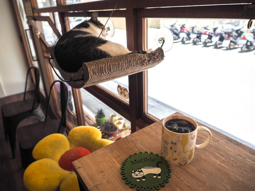 In Tainan, I enjoyed my visit to Fat Cat Story. Although there was only one cat, Bing Bing, he was super friendly, and they provided free food for me to feed him. Find out other things to do in the area in my guide to Tainan. A few of Tainan’s most interesting temples are also near this particular cafe.